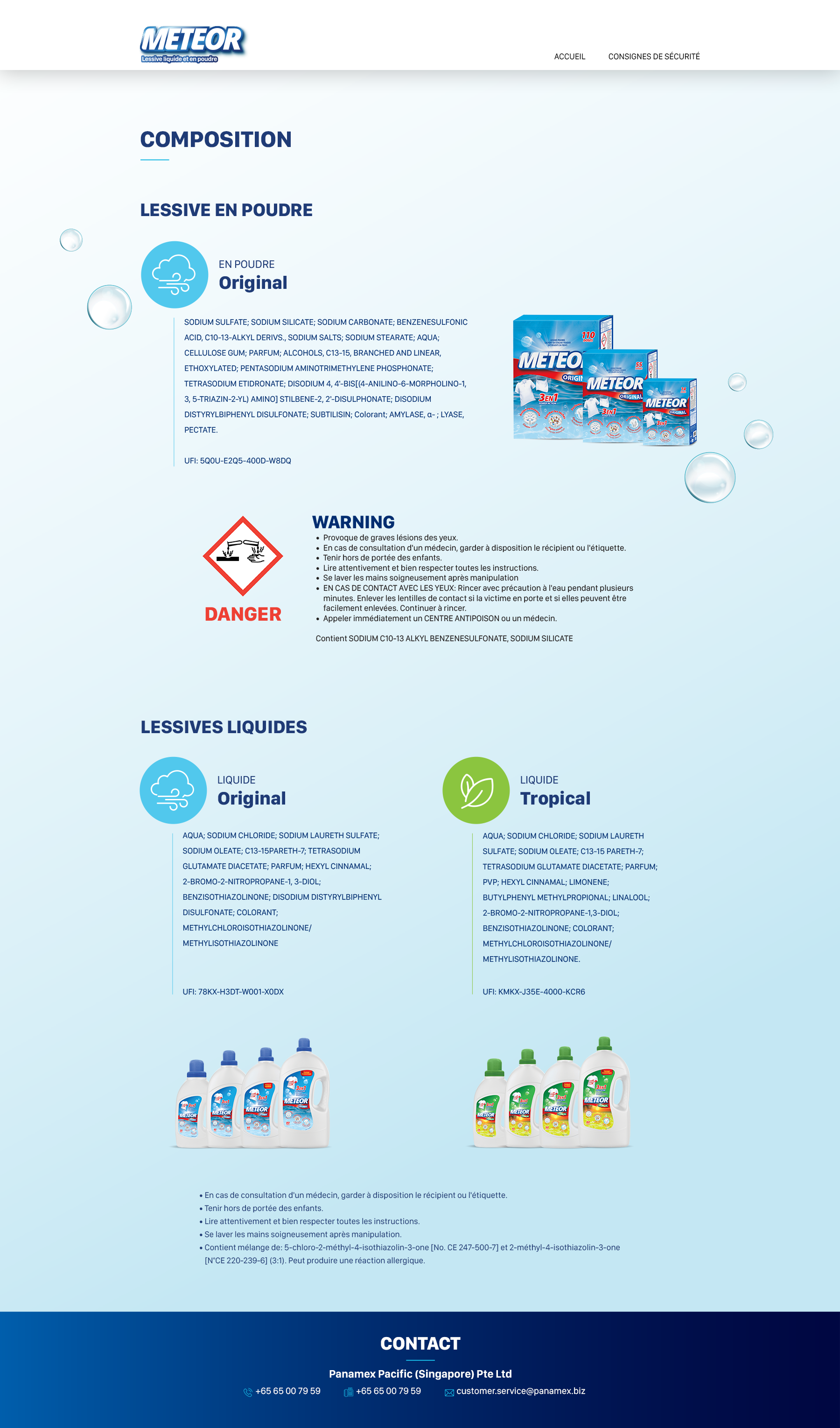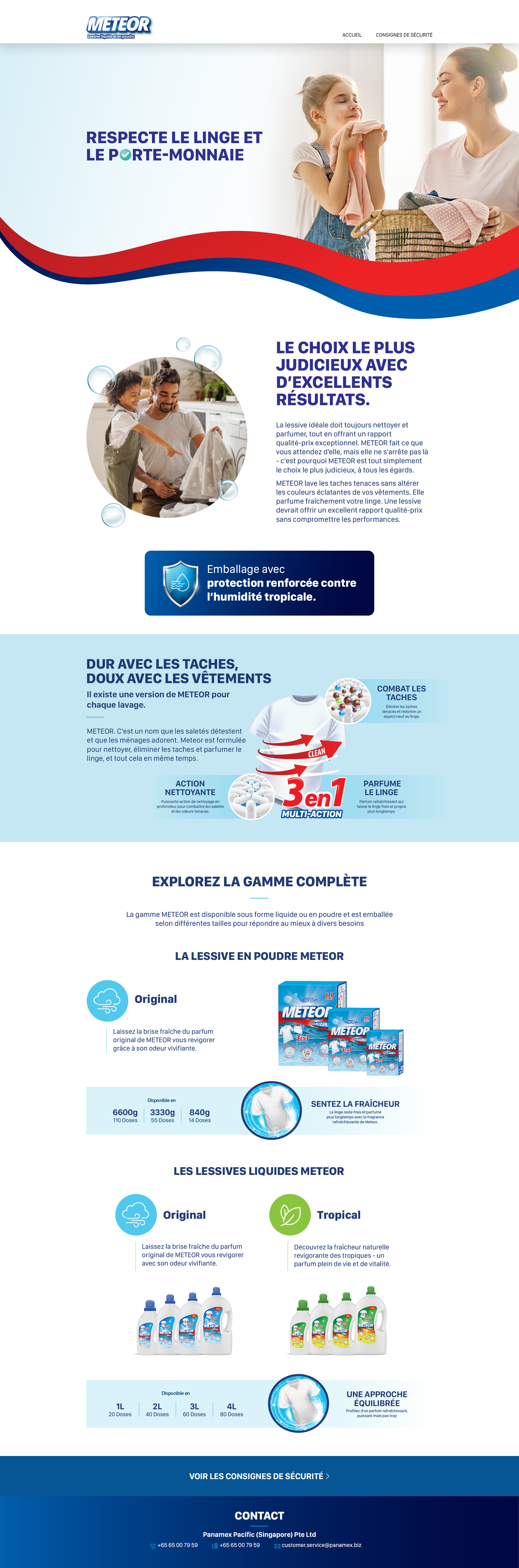 Meteor is a brand of detergents available in the Pacific Islands. We worked closely with their head office and design agency to develop a new website displaying informational content as well as best practices to their customers.