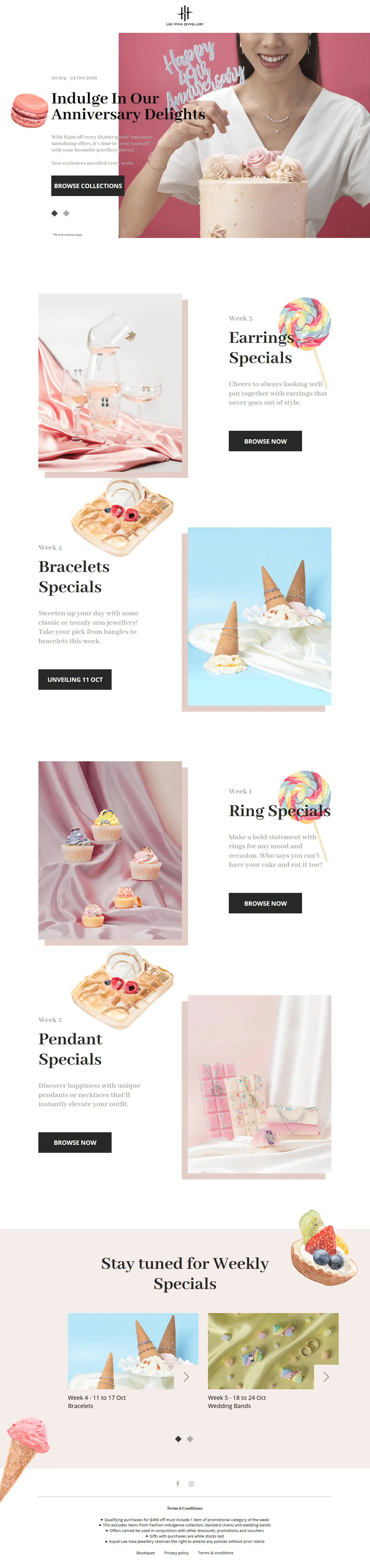 To celebrate the 49th anniversary of Lee Hwa Jewellery, we were tasked to code an EDM with special offers for their clients. We developed a low spam-rating, fully responsive EDM for this purpose.
